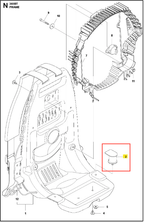 Amortyzator dmuchawy 360BT Husqvarna - wysokiej jakości oryginalna część producenta Husqvarna. Aktualny numer katalogowy produktu: 576562201. Szczegóły montażu dostępne w załączonym schemacie. Poniżej znajduje się lista modeli, w których ten element jest wykorzystywany.