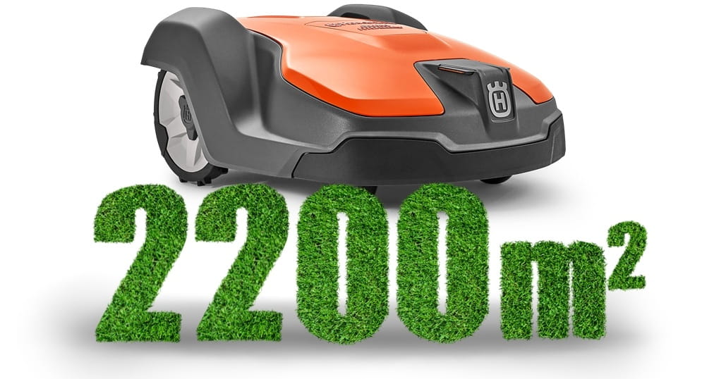 Maszyna z powodzeniem kosi tereny o wielkości do 2200 m², a dodatkowo może obsługiwać zbocza o nachyleniu terenu do 45%.