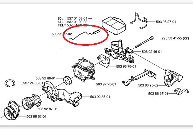 Cięgło gazu pilarki Husqvarna 359/357XP