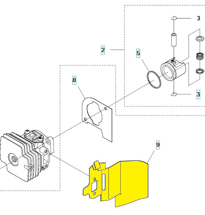 Deflektor ciepła dedykowany do nożyc Husqvarna. Produkt występuje pod numerem katalogowym: 523013501. Dokładne umiejscowienie deflektora widoczne na załączonym schemacie. Producent Husqvarna.