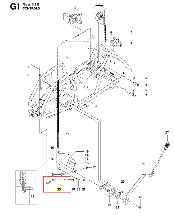 Drążek ridera R 111B Husqvarna - wysokiej jakości oryginalna część producenta Husqvarna. Aktualny numer katalogowy produktu: 522560101. Szczegóły montażu dostępne w załączonym schemacie. Poniżej znajduje się lista modeli, w których ten element jest wykorzystywany.