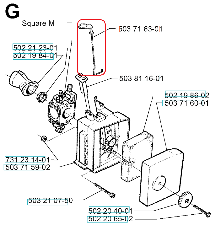 Dźwignia ssania dedykowana do dmuchaw, wykaszarek i nożyc Husqvarna. Przedstawiona część występuje pod oryginalnym numerem katalogowym: 503716301. Dokładne umiejscowienie dźwigni widoczne na załączonym schemacie. Producent: Husqvarna.