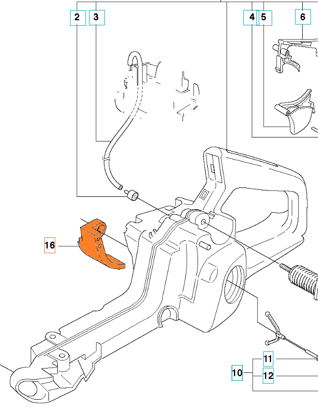 Osłona zbiornika paliwa, inaczej nazywana fartuchem, przeznaczona do pilarek spalinowych Husqvarna i Jonsered. Oryginalny numer katalogowy: 503964301 - producent Husqvarna.