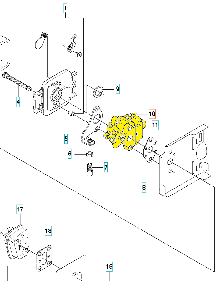 Gaźnik dedykowany do nożyc Husqvarna. Produkt występuje pod numerem katalogowym: 544304301. Dokładne umiejscowienie gaźnika widoczne na załączonym schemacie. Producent Husqvarna.