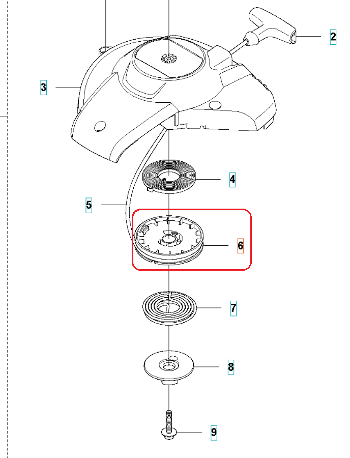 Kółko rozrusznika dedykowane do nożyc Husqvarna. Produkt występuje pod numerem katalogowym: 523010701. Dokładne umiejscowienie kółka widoczne na załączonym schemacie. Producent Husqvarna.