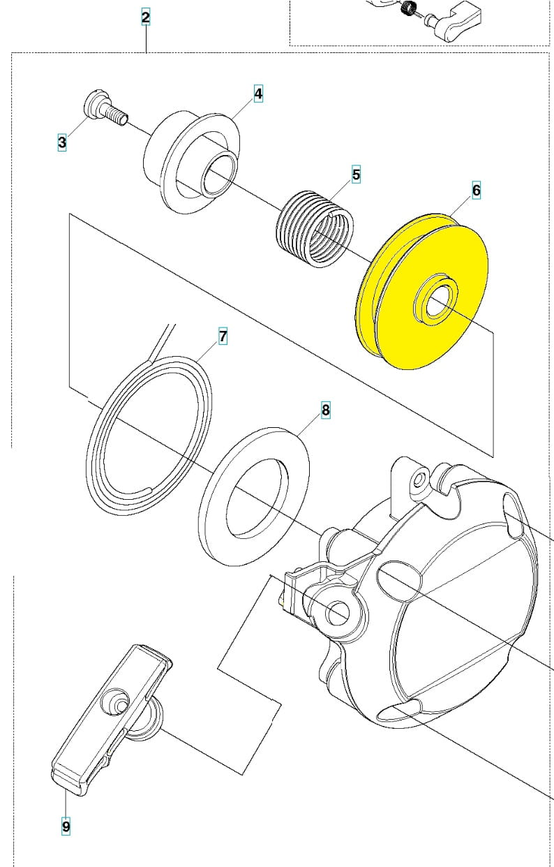 Koło linowe dedykowane do wykaszarek Husqvarna. Produkt występuje pod numerem katalogowym: 521618301. Dokładne umiejscowienie koła widoczne na załączonym schemacie. Producent Husqvarna.