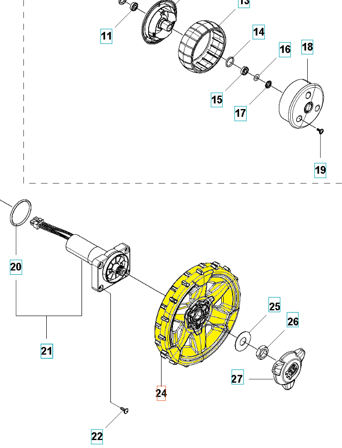 Koło tylne do kosiarek automatycznych Husqvarna Automower. Dokładne wskazanie koła widoczne na załączonym schemacie. Producent: Husqvarna. Numer katalogowy: 590217301.