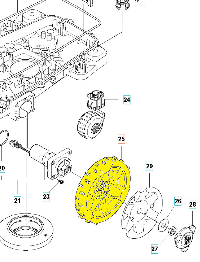Koło tylne do kosiarek automatycznych Husqvarna Automower. Dokładne wskazanie koła widoczne na załączonym schemacie. Producent: Husqvarna. Numer katalogowy: 590217303.