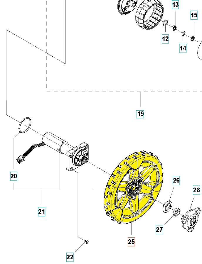 Koło tylne do kosiarek automatycznych Husqvarna Automower. Dokładne wskazanie koła widoczne na załączonym schemacie. Producent: Husqvarna. Numer katalogowy: 582280201.