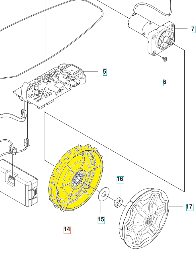 Koło tylne do kosiarek automatycznych Husqvarna Automower. Dokładne wskazanie koła widoczne na załączonym schemacie. Producent: Husqvarna. Numer katalogowy: 535599901.