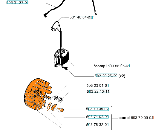 Oryginalne koło wentylatora kompletne, dedykowane do pilarek spalinowych Husqvarna i Jonsered. Aktualny numer katalogowy części: 503790004 - producent: Husqvarna. Poprzedni numer katalogowy koła: 503594603.