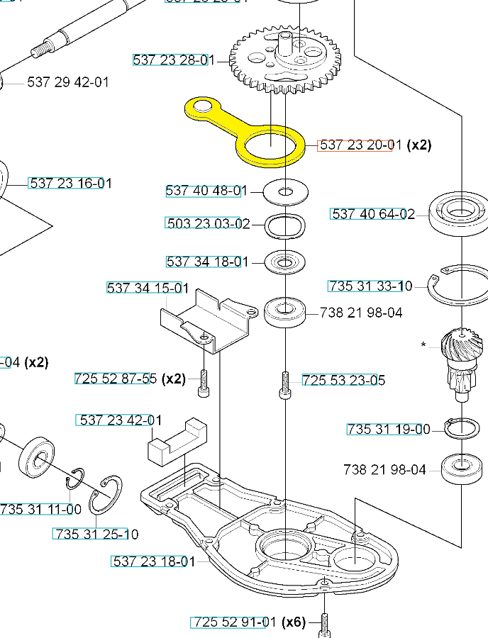 Korbowód dedykowany do nożyc Husqvarna. Produkt występuje pod numerem katalogowym: 537232001. Dokładne umiejscowienie korbowodu widoczne na załączonym schemacie. Producent Husqvarna.