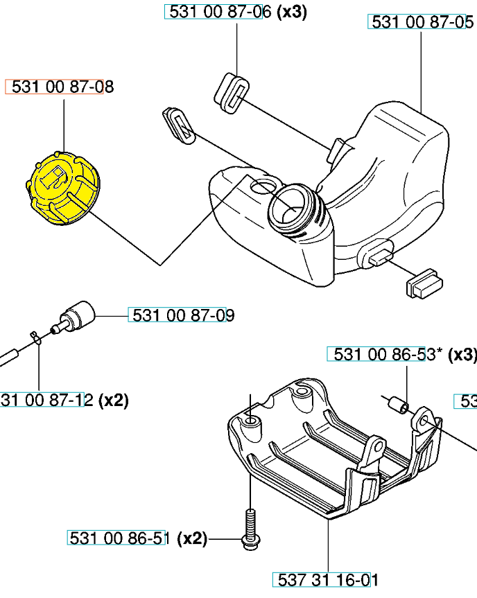 Korek paliwa dedykowany do nożyc, wykaszarek i podkaszarek Husqvarna. Produkt występuje pod numerem katalogowym: 544843201. Dokładne umiejscowienie korka widoczne na załączonym schemacie. Producent Husqvarna.