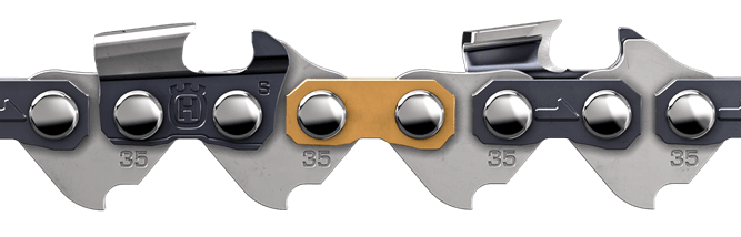 Łańcuch o niewielkim poziomie wibracji i ogniwach tnących w kształcie półdłuta. Dzięki zastosowaniu tego typu profilu zęba prędkość pracy pilarką znacznie zwiększa się. Używając łańcucha S35G otrzymujemy szybkie, profesjonalne cięcie twardszego drewna bez konieczności częstego ostrzenia łańcucha. Łańcuch ma 80 zębów prowadzących (zęby, które poruszają się w rowku prowadnicy). Pasuje do prowadnicy 20" czyli 50cm długości i szerokości rowka 1,5mm. Podziałka łańcucha .325". Odpowiedni pilnik do ostrzenia łańcucha o średnicy- 4,8mm.
