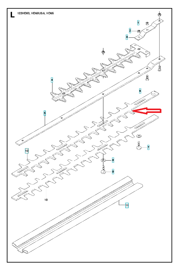 Listwa tnąca dedykowana do nożyc Husqvarna. Produkt występuje pod numerem katalogowym: 544301801. Dokładne wskazanie listwy widoczne na załączonym schemacie. Producent Husqvarna.