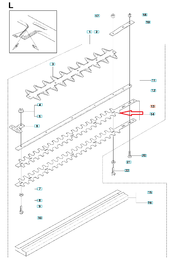 Listwa tnąca dedykowana do nożyc Husqvarna. Produkt występuje pod numerem katalogowym: 537100108. Dokładne wskazanie listwy widoczne na załączonym schemacie. Producent Husqvarna.