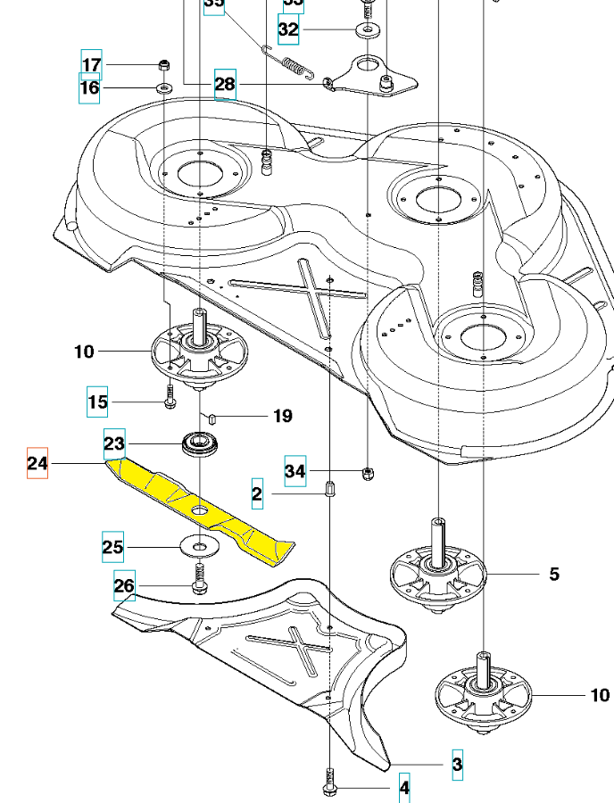 Husqvarna: P524, R 422Ts AWD, R 422Ts, PF21, PR17 AWD, PR17 (2008-03, 966772601; 2012-02), PROFLEX 21 AWD (965192501; 2008-03, 965192501; 2009-04, 965192501; 2010-07, 965192501; 2011-03)