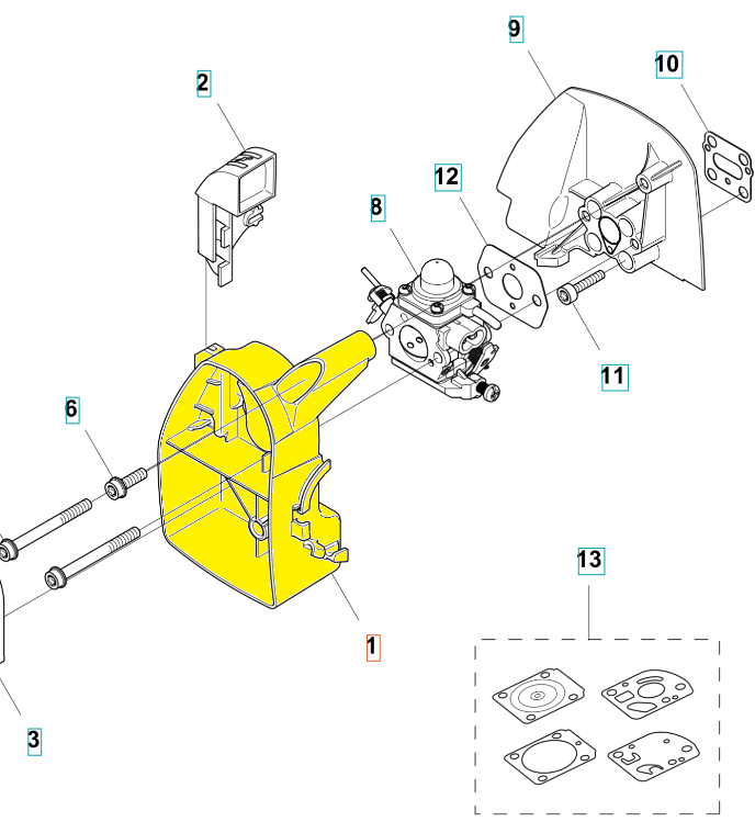 Obsada filtra powietrza dedykowana do wykaszarek i podkaszarek Husqvarna. Produkt występuje pod numerem katalogowym: 576887301. Dokładne wskazanie obsady widoczne na załączonym schemacie. Producent Husqvarna.