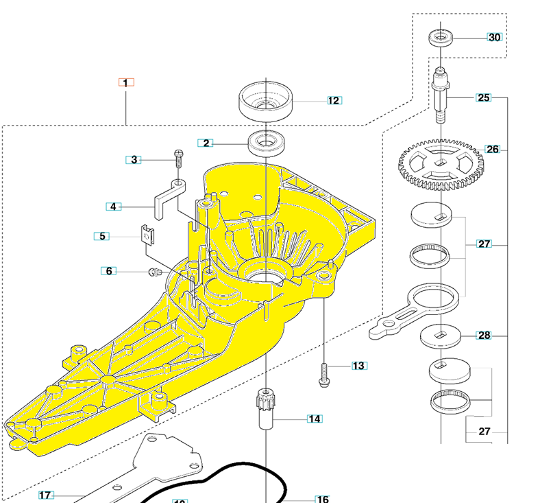 Obudowa przekładni dedykowana do nożyc Husqvarna. Produkt występuje pod numerem katalogowym: 537231601. Dokładne umiejscowienie obudowy widoczne na załączonym schemacie. Producent Husqvarna.