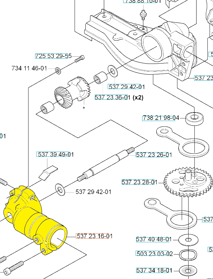 Obudowa przekładni dedykowana do nożyc Husqvarna. Produkt występuje pod numerem katalogowym: 537231601. Dokładne umiejscowienie obudowy widoczne na załączonym schemacie. Producent Husqvarna.