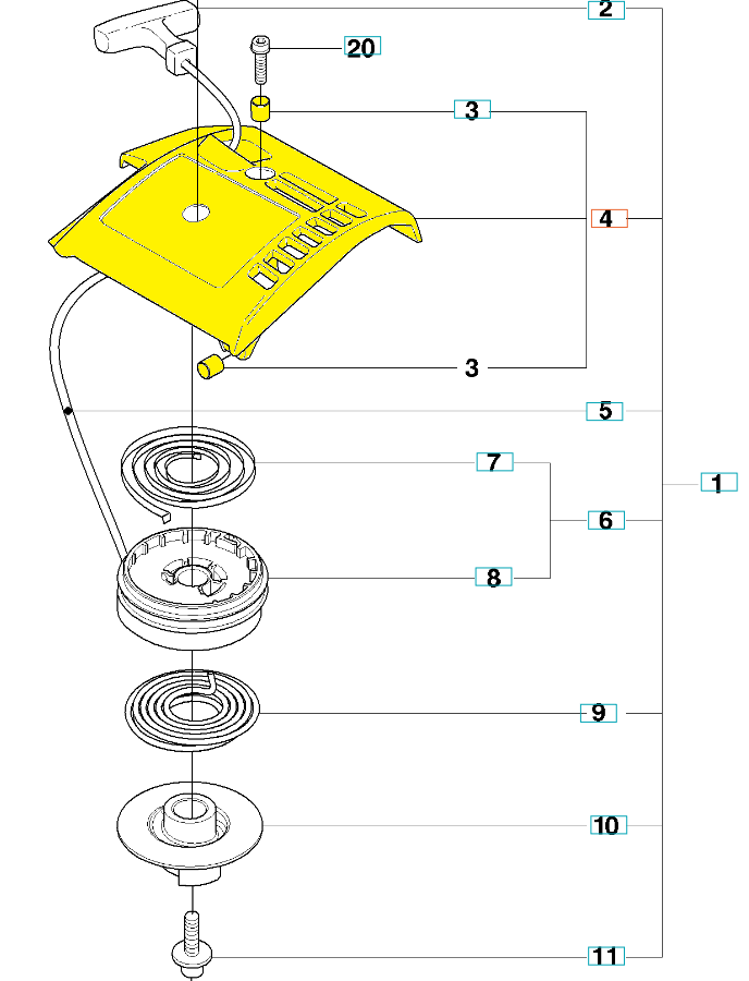 Obudowa rozrusznika dedykowana do nożyc Husqvarna. Produkt występuje pod numerem katalogowym: 544002402. Dokładne wskazanie obudowy widoczne na załączonym schemacie. Producent Husqvarna.