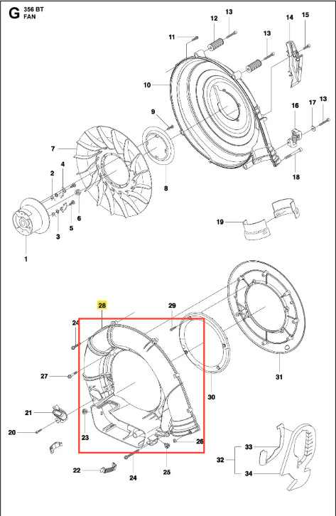 Obudowa wentylatora dmuchawy 356BTx Husqvarna