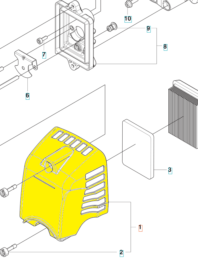 Osłona filtra powietrza dedykowany do wykaszarek Husqvarna. Produkt występuje pod numerem katalogowym: 528706501. Dokładne wskazanie osłony widoczne na załączonym schemacie. Producent Husqvarna.