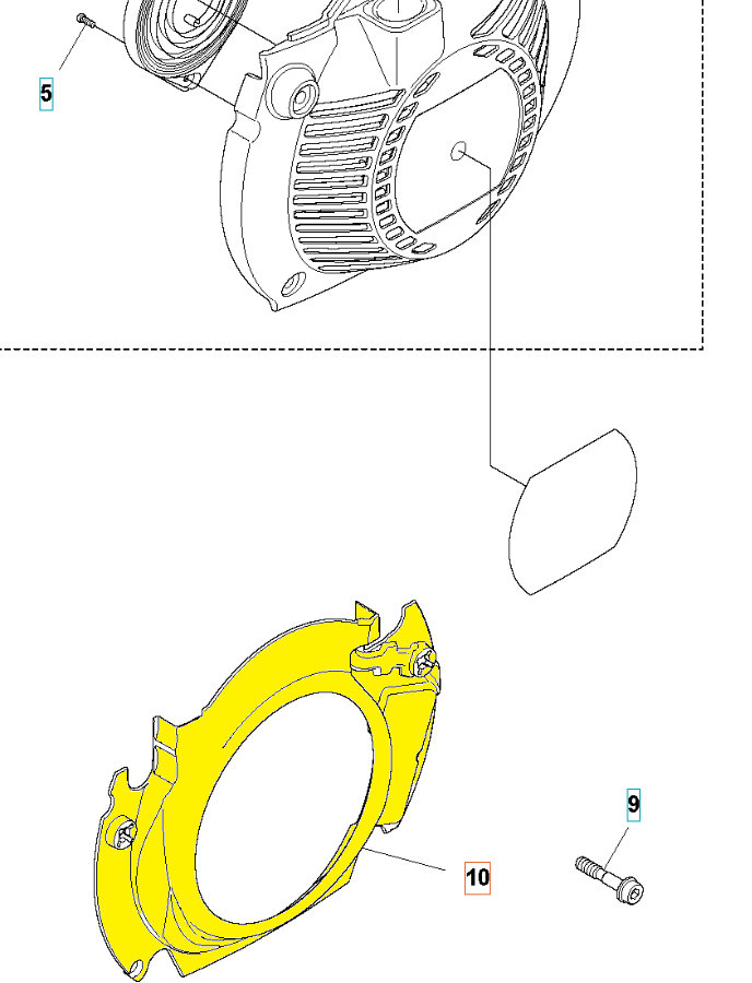 Osłona wentylatora dedykowana do wykaszarek Husqvarna. Produkt występuje pod numerem katalogowym: 510205001. Dokładne wskazanie osłony widoczne na załączonym schemacie. Producent Husqvarna.
