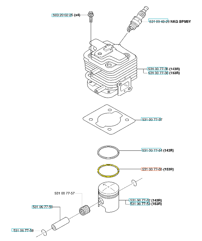 Pierścień tłoka dedykowany do wykaszarek Husqvarna. Produkt występuje pod numerem katalogowym: 531007755. Dokładne wskazanie pierścienia widoczne na załączonym schemacie. Producent Husqvarna.