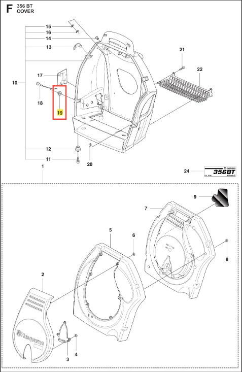 Pierścień uszczelniający dmuchawy 356BTx Husqvarna - wysokiej jakości oryginalna część producenta Husqvarna. Aktualny numer katalogowy produktu: 503145402. Szczegóły montażu dostępne w załączonym schemacie. Poniżej znajduje się lista modeli, w których ten element jest wykorzystywany.