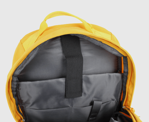 Niewielkich rozmiarów plecak o pojemności 14 litrów wykonany został z certyfikowanego poliestru pochodzącego z recyklingu z ponownie użytych butelek PET.