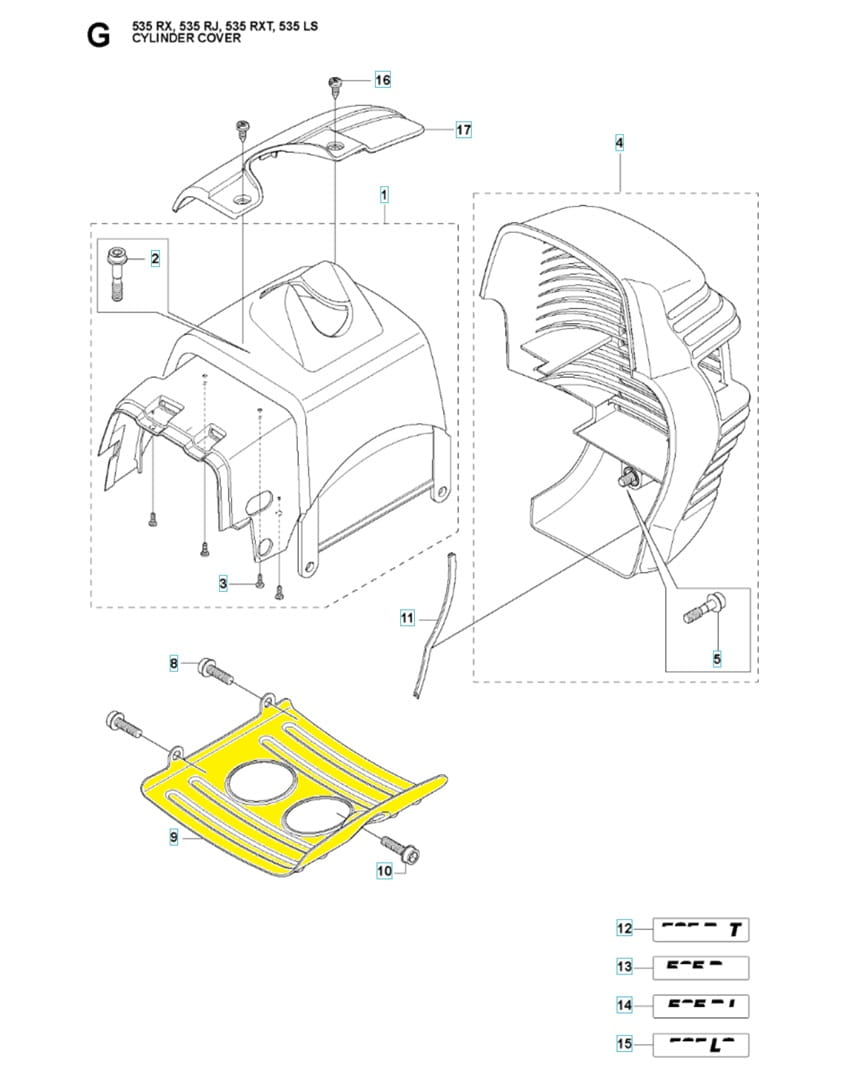 Husqvarna: 241R (20144900001-Current), 333R, 333RJ, 335RX, 335FR, 335RJX, 535RJ, 535RX, 535RXT.