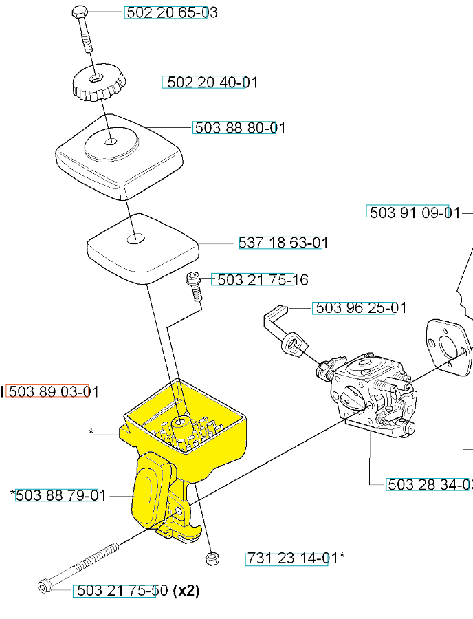 Podstawa filtra dedykowana do nożyc, podkaszarek i wykaszarek Husqvarna. Produkt występuje pod numerem katalogowym: 503890301. Dokładne umiejscowienie podstawy widoczne na załączonym schemacie. Producent Husqvarna.