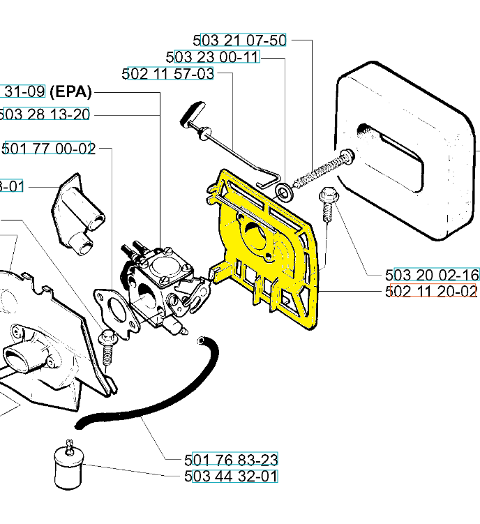 Podstawa filtra powietrza dedykowana do wykaszarek Husqvarna. Produkt występuje pod numerem katalogowym: 502112002. Dokładne umiejscowienie podstawy widoczne na załączonym schemacie. Producent Husqvarna.