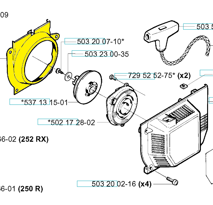Husqvarna: 250R (19944000001-19954000000, 19954000001-19973100000, 19973100001-19991400000, 19991400001-20011800000, 20011800001-20023100000, 20023100001-20145399999, 20144900001-Current), 250RX (19944000001-19954000000, 19954000001-19973100000, 19973100001-Current), 252RX (19973100001-19991400000, 19991400001-20011800000, 20011800001-20023100000, 20023100001-20145199999, 20144900001-Current).