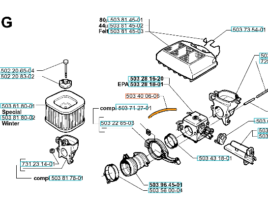 Husqvarna: 362, 362XP, 362XP EPA, 365H, 371XP, 371XP EPA, 372XP.