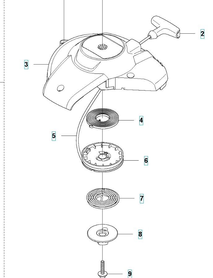 Rozrusznik dedykowany do nożyc Husqvarna. Produkt występuje pod numerem katalogowym: 523009201 Elementy wchodzące w zestaw rozrusznika widoczne na załączonym schemacie. Producent Husqvarna.