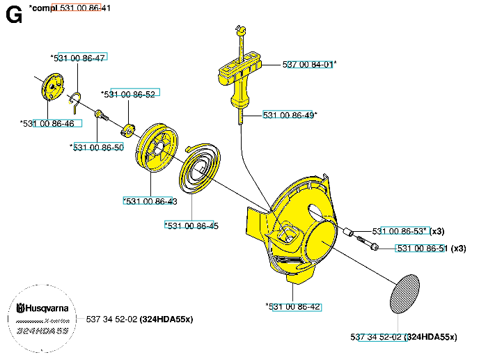 Husqvarna: 324HDA55 X-series (20041800001-20053600000, 20053600001-obecnie).