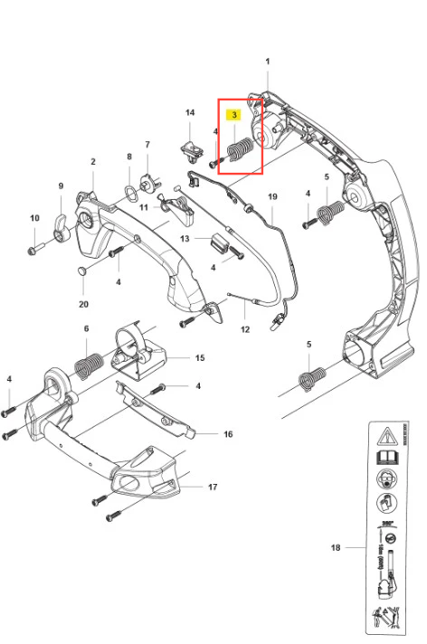 Sprężyna dmuchawy 525BX Husqvarna - wysokiej jakości oryginalna część producenta Husqvarna. Aktualny numer katalogowy produktu: 587110402. Szczegóły montażu dostępne w załączonym schemacie. Poniżej znajduje się lista modeli, w których ten element jest wykorzystywany.