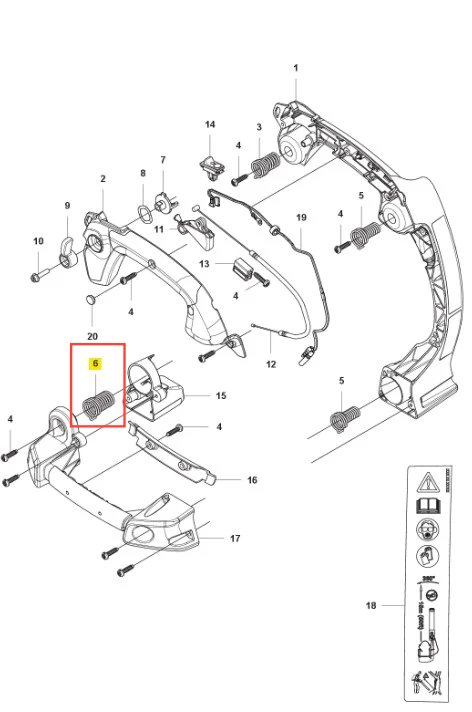 Sprężyna dmuchawy 525BX Husqvarna - wysokiej jakości oryginalna część producenta Husqvarna. Aktualny numer katalogowy produktu: 587110302. Szczegóły montażu dostępne w załączonym schemacie. Poniżej znajduje się lista modeli, w których ten element jest wykorzystywany.