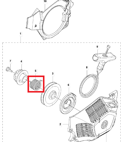 Sprężyna rozrusznika pilarki 543X/543XPG Husqvarna.