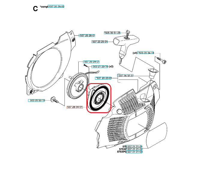 Husqvarna: 575 XP, 570 (20051400001- 20070100000, 20070100001- 20093100000, 20093100001- 20110100000, 576XP AUTO TUNE, 570 II, 576XP/XPG, 570 AUTO TUNE.