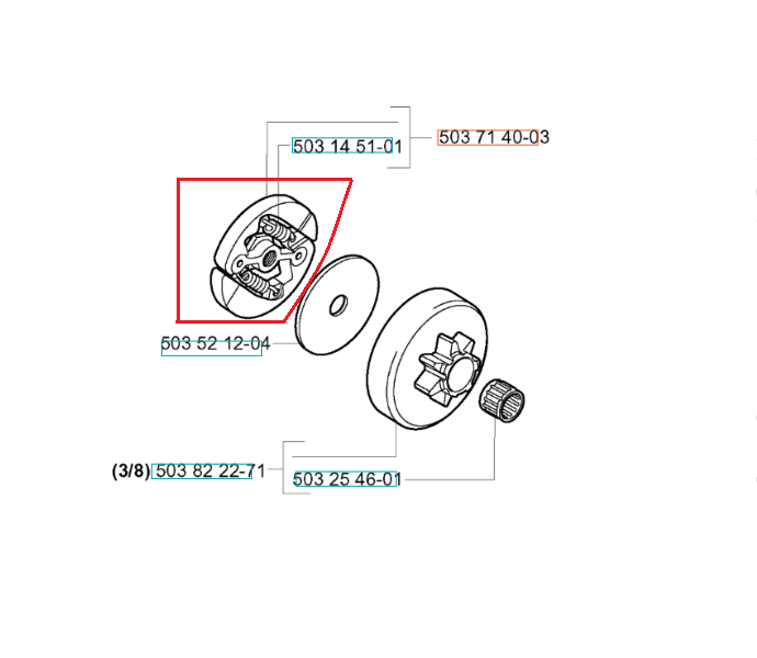 Oryginalny, kompletny zespół sprzęgła do pilarek spalinowych marki Husqvarna i Jonsered. Numer katalogowy: 503714003.