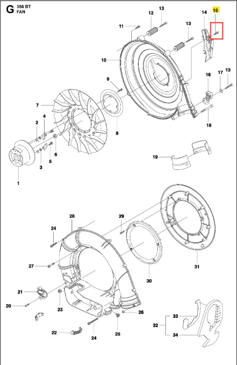 Śruba dmuchawy 356BTx Husqvarna - wysokiej jakości oryginalna część producenta Husqvarna. Aktualny numer katalogowy produktu: 503216610. Szczegóły montażu dostępne w załączonym schemacie. Poniżej znajduje się lista modeli, w których ten element jest wykorzystywany.
