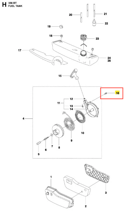 Śruba dmuchawy 356BTx Husqvarna - wysokiej jakości oryginalna część producenta Husqvarna. Aktualny numer katalogowy produktu: 503207810. Szczegóły montażu dostępne w załączonym schemacie. Poniżej znajduje się lista modeli, w których ten element jest wykorzystywany.