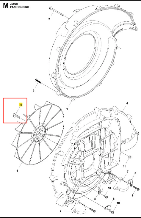 Śruba dmuchawy 360BT Husqvarna - wysokiej jakości oryginalna część producenta Husqvarna. Aktualny numer katalogowy produktu: 576561601. Szczegóły montażu dostępne w załączonym schemacie. Poniżej znajduje się lista modeli, w których ten element jest wykorzystywany.