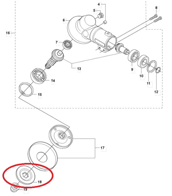 Tarcza pędna/kołnierz podtrzymujący wykonany z wysokiej jakości tworzywa, znajduje się przy przekładni stożkowej kosy pomiędzy nakrętką a napędem.