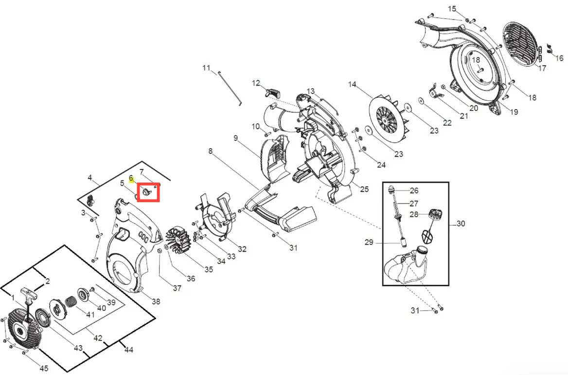 Tempomat z grzechotką dmuchawy 125BVX Husqvarna - oryginalna część producenta Husqvarna. Element dedykowany do modeli maszyn spalinowych marek: Husqvarna, Jonsered, Other, McCulloch, RedMax. Aktualny numer katalogowy produktu: 545111501. Dokładne modele, w których występuje poniżej. Dokładne umiejscowienie na załączonym schemacie.