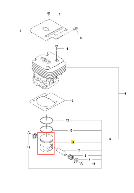 Tłok dmuchawy 578BTF Husqvarna - wysokiej jakości oryginalna część producenta Husqvarna. Aktualny numer katalogowy produktu: 576596501. Szczegóły montażu dostępne w załączonym schemacie. Poniżej znajduje się lista modeli, w których ten element jest wykorzystywany.