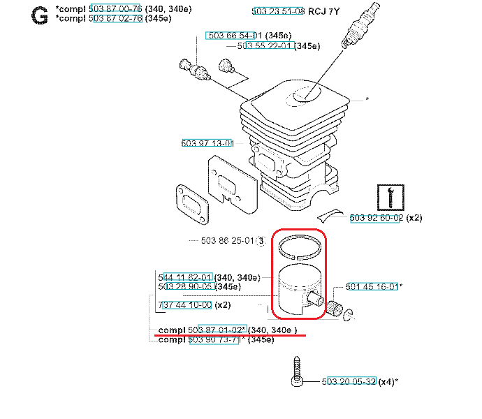 Tłok kompletny, zespół tłoka pilarki Husqvarna 350/345/340
